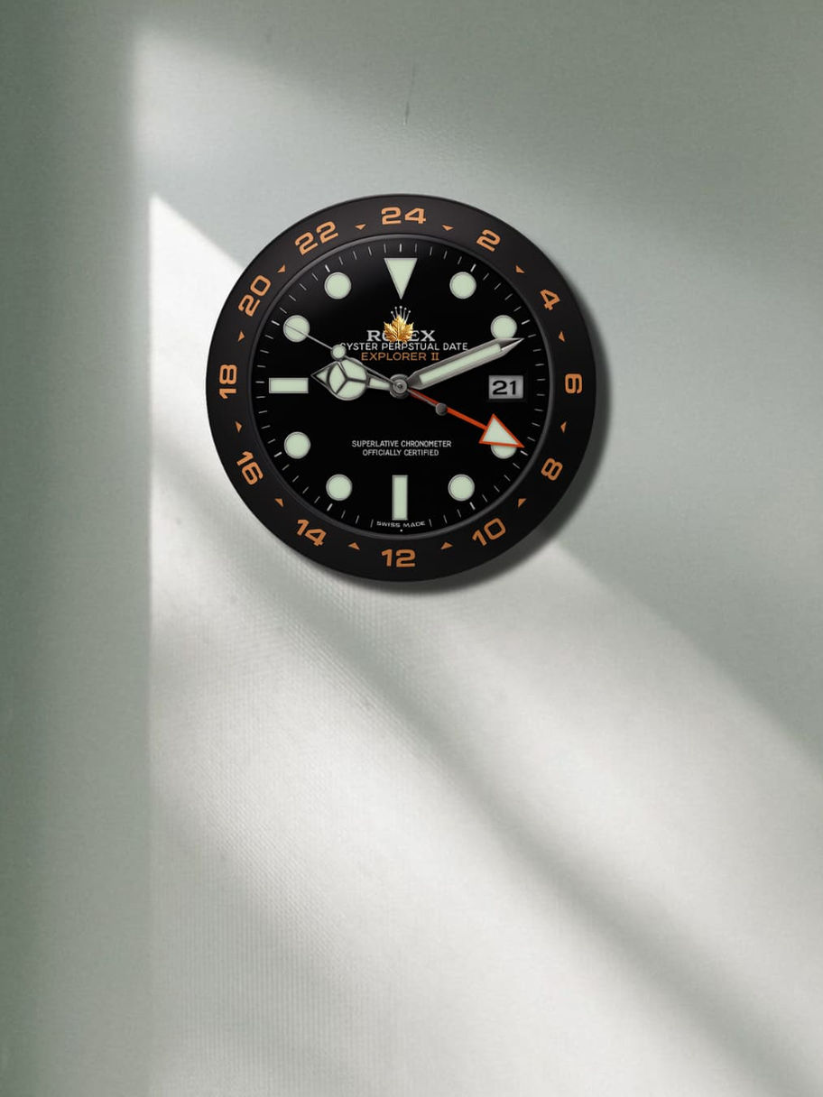 Crafted with precision, the clock captures the spirit of exploration while maintaining Rolex’s hallmark sophistication. Whether placed in your office, living room, or showroom, it makes a striking statement of class and exclusivity.